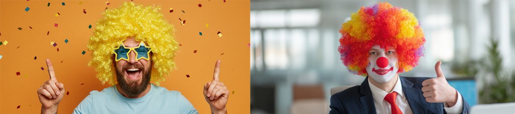 宴会や余興、ハロウィンのコスプレなどで場を盛り上げるためのアイテム。アフロヘアやカラフルな髪型など、自然さよりも見た目のインパクトを重視して作られています。