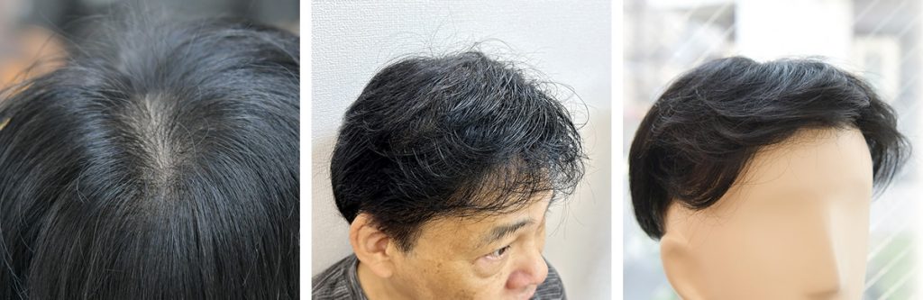 髪質、髪色、毛流、白髪の割合、植え込み密度もお客様に合わせて部位ごとに細かい設計が可能です。