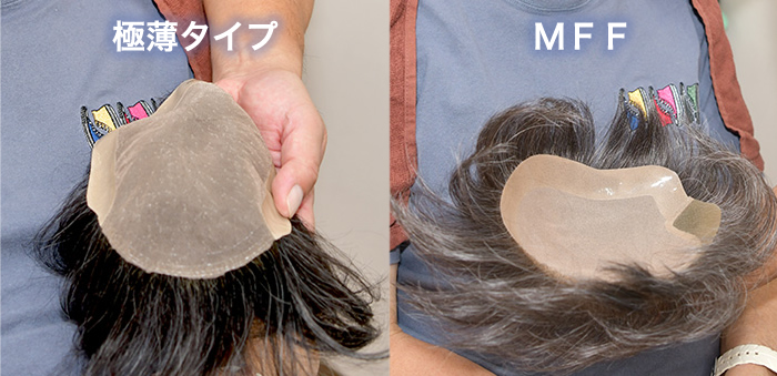 極薄タイプは、従来型かつらに比べてベースがとても薄いため、